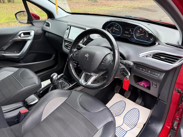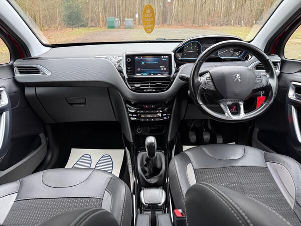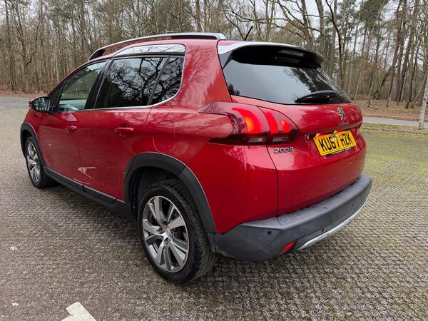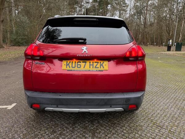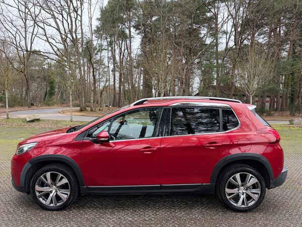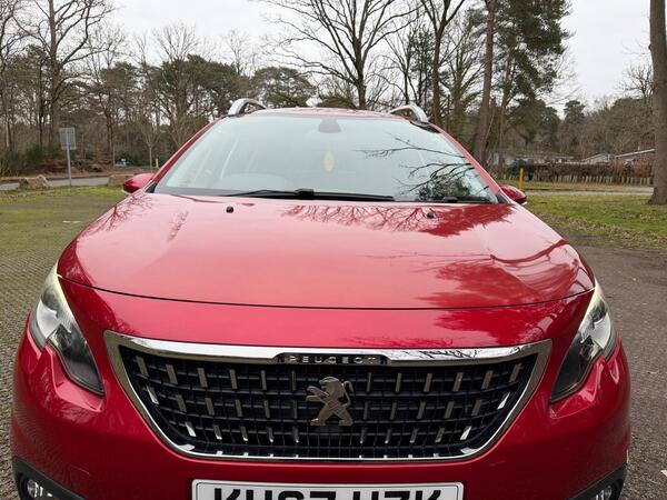 2017 Peugeot 2008 1.6 BlueHDi Allure in Red — a refined diesel SUV with full service history and MOT valid until February 2027. 67-plate, Euro 6 and ULEZ compliant, HPI clear with DVSA verified mileage. Priced £357 below market average. 3 previous owners. Allure specification includes half-leather trim, 17" alloy wheels, automatic dual-zone climate control, Visibility Pack with auto headlights, rear parking sensors, 7" multifunction colour touchscreen with Apple CarPlay, Bluetooth, and steering wheel controls. Privacy glass, roof rails, and 2 keys. Comes with 12-month free AA breakdown cover and flexible warranty options. Outstanding 81 mpg fuel economy with just 97 g/km CO₂. 1-year guarantee included.