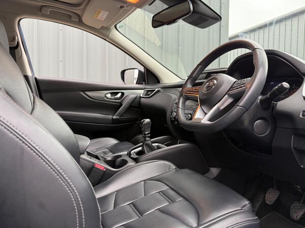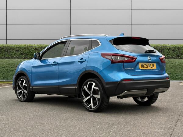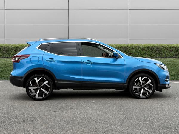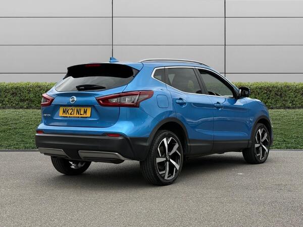 2021 Nissan Qashqai 1.3 DIG-T N-Motion in Blue — exceptionally low mileage at just 18,780 miles. Single owner from new with clear vehicle history check. Euro 6 compliant, full Nissan service history with last service 05 March 2026. MOT valid until March 2027. 6-month warranty included. N-Motion trim with Tech Pack: rear parking camera, Nissan Intelligent Key with keyless entry, Nissan Connect 7" touchscreen navigation, Bluetooth audio streaming, dual-zone climate control, LED Pack with LED headlights, 19" alloy wheels, glass roof, roof rails, and intelligent park assist. Efficient 42.1 mpg with low insurance group — exceptional value for this SUV. 1-year guarantee included.