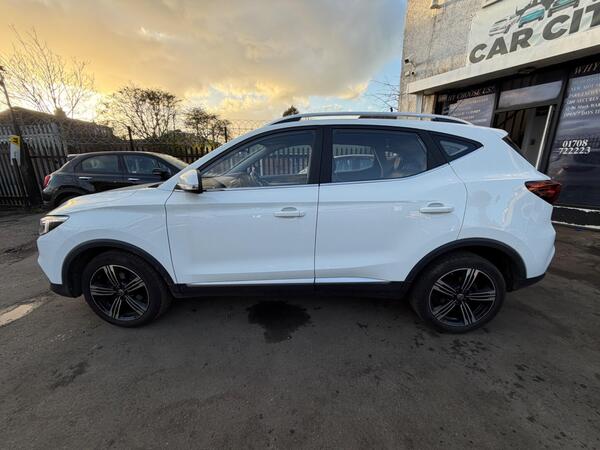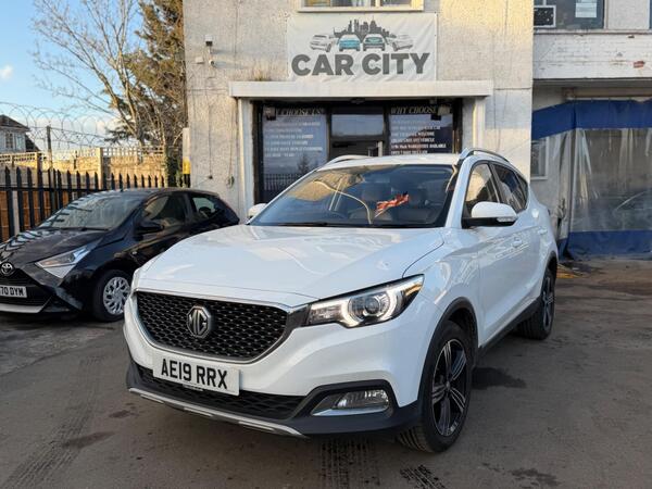 2019 MG ZS 1.0 T-GDI Exclusive Automatic in Pearl White — £217 below market average. Exclusive trim includes 8-inch touchscreen with Apple CarPlay and iGo navigation, 17-inch diamond-cut alloys, silver roof rails, rear-view camera, rear parking sensors, 6-speaker 3D audio, DAB radio, and cruise control. Full service history, 2 keys, 1-year fresh MOT, and complimentary warranty included (extendable to 36 months). Free home delivery. 4.7-star rated dealer.