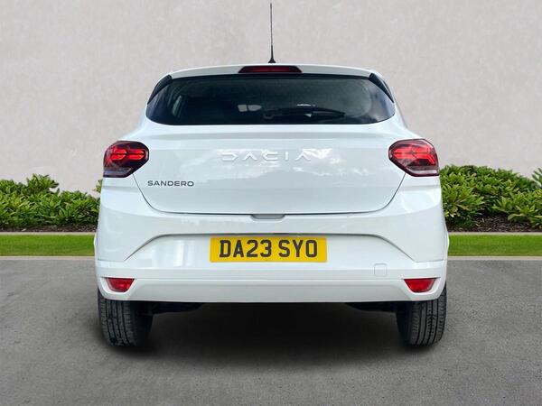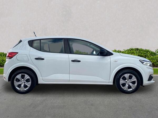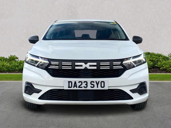 Dacia Sandero 1.0 TCe Essential 2023 en blanco Glacier — la marca de coches nuevos más asequible del Reino Unido. Solo un propietario anterior con 18.642 millas. Aprobado por el fabricante, sin cargas HPI, inspección de 115 puntos superada y mínimo 9 meses de ITV. Equipamiento: radio DAB, carga USB, control de crucero, limitador de velocidad, luces diurnas LED, 6 airbags, frenado autónomo de emergencia y aire acondicionado manual.