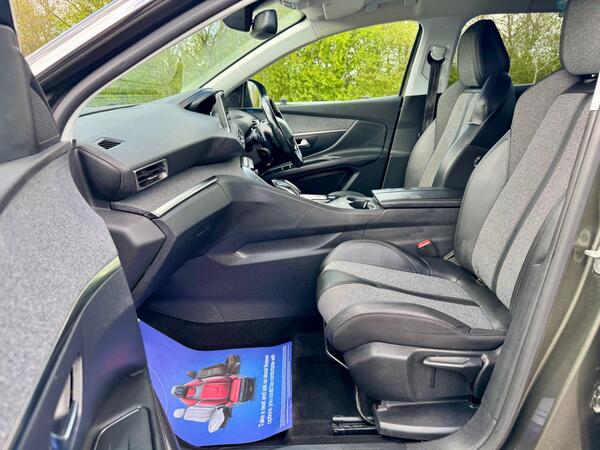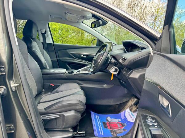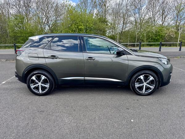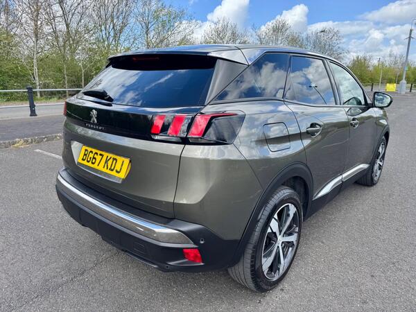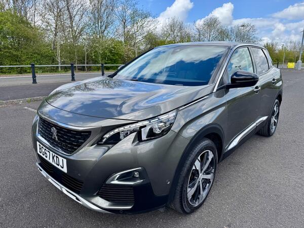 Peugeot 3008 1.6 BlueHDi Allure EAT automático 2017 en gris — SUV diésel Euro 6 y compatible con ULEZ. " "120.000 millas con historial de servicio completo (9 sellos), correa de distribución cambiada e ITV hasta abril de 2027. " "Solo 1 propietario anterior, sin cargas HPI y 2 llaves. " "Equipamiento: navegación por satélite, Apple CarPlay/MirrorLink, Bluetooth, radio DAB, reconocimiento de voz, " "sensores de aparcamiento delanteros y traseros con cámara 360° y trasera, faros Xenón automáticos, luces diurnas LED, " "control de crucero, tapicería semipiel, modos de conducción adaptativos, climatizador, " "retrovisores eléctricos plegables, llantas de aleación, cristales tintados y antinieblas delanteros. " "Incluye 12 meses de ITV, 12 meses de asistencia AA y 3 meses de garantía mecánica.