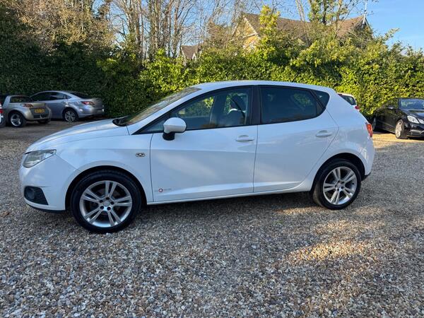 SEAT Ibiza 1.4 SE Copa 2012 en blanco — excelente precio, £207 por debajo del valor de mercado. Ideal como primer coche: grupo de seguro 08E (25% más bajo), ITV de 12 meses y entrega a domicilio gratuita en 20 millas. Equipamiento Copa: llantas Fabula de 16 pulgadas, climatizador con guantera refrigerada, espejo retrovisor antideslumbrante, volante de cuero, control de crucero y limpiaparabrisas con sensor de lluvia. 2 propietarios anteriores. Vendedor con 5 estrellas.